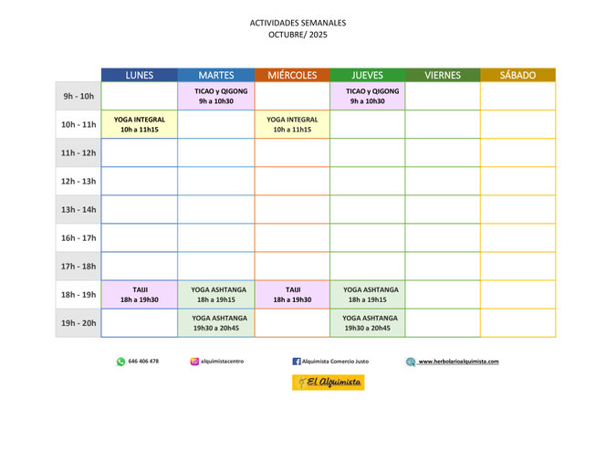 En el Centro Alquimista, impartimos varias actividades físicas y cursos de desarrollo personal semanales: